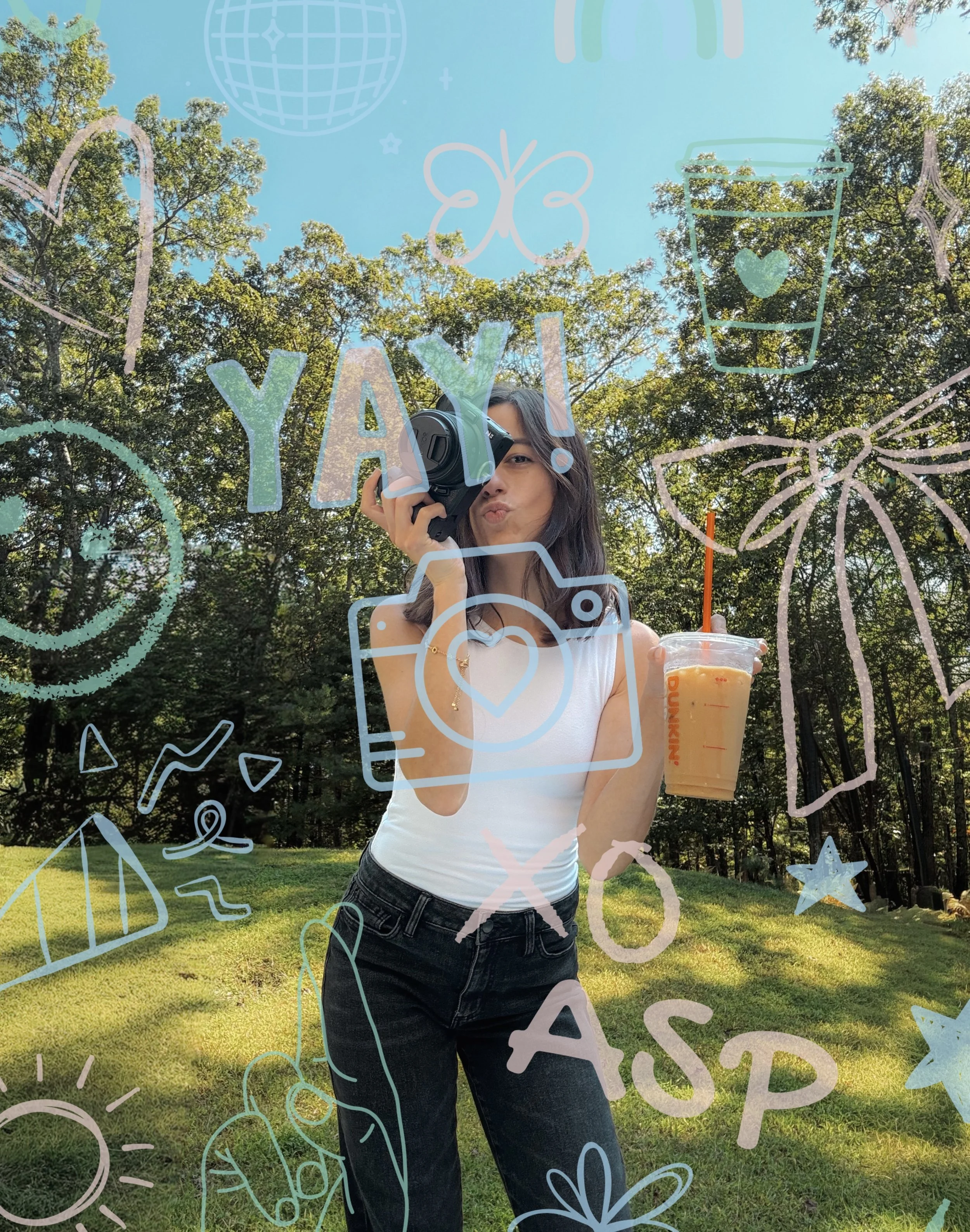 This incredible life, my hubby + our son Geo + our pup Pudgy, my cute family, ICED COFFEE (coffee shops, the smell of coffee, everything coffee), the word “YAY”, disco balls, smiley faces, overusing exclamation points, sunrises & sunsets (and forever stopping to admire them any chance I get), having an insane amount of optimism, the beach, confetti, golden hour, espresso martinis (okay this one definitely falls under the “everything coffee” one).
